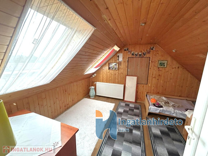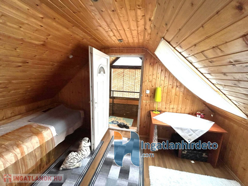 A tornácról külön bejárattal megközelíthető tetőtéri vendégszoba további életteret biztosít, amely ideális vendégek fogadására vagy elszeparált lakrész kialakítására.