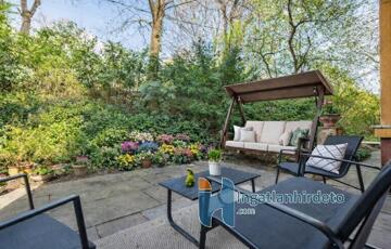 A lakáshoz egy közös társasházi tulajdonú, de kizárólag saját használatú 40 m2 gondozott, virágos kertrész kapcsolódik. A kert élő növényekkel körbezárt, amely biztosítja a privát szférát.